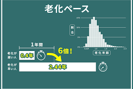 違う!「ダニーデン研究」ニュージーランドのダニーデン市で1972年〜1973年に生まれた1037人の参加者を対象とし、20年間に渡って彼らの健康状態を4回測定しました。その多種多様な測定に基づき、それぞれの参加者に「生物学的な年齢」を割り当...