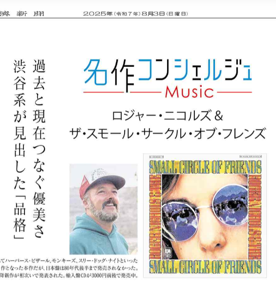 名作コンシェルジュ Well Being 2025.08.04 毎週日曜の日経新聞のこのコーナーを楽しみにしている。 「名作コンシェルジュ」 音楽ライターが素敵なアルバムを紹介してくれるので、amazon musicで検索して日曜朝は朝食を食べながら聴いている。私は、そもそも、ロジャー・ニコルズという人を知らなかったが、今年5月に亡くなったそうだ。 このアルバムは懐かしい感じの曲がゆったりと流れ、とても心地よい。 まだまだ素敵な音楽がたくさんある。日曜の日経が楽しみ。 これも、ウェルビーイング!
