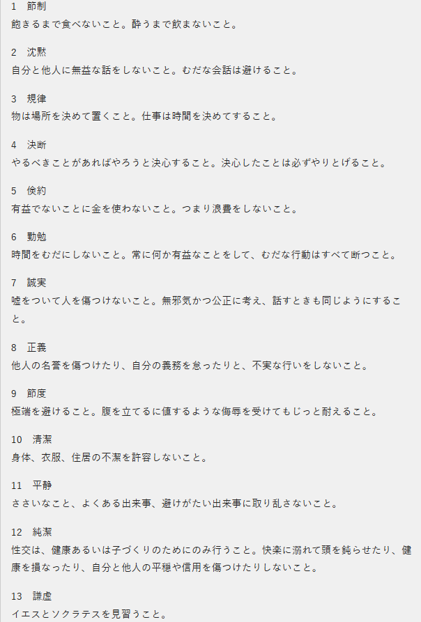 幸せの秘訣は何か。「アメリカ建国の父」と呼ばれるベンジャミン・フランクリンは、79歳のときに書いた自伝で「13の徳目リスト」を公開している。彼は「このリストのおかげで、幸福な人生を手に入れられた」という。