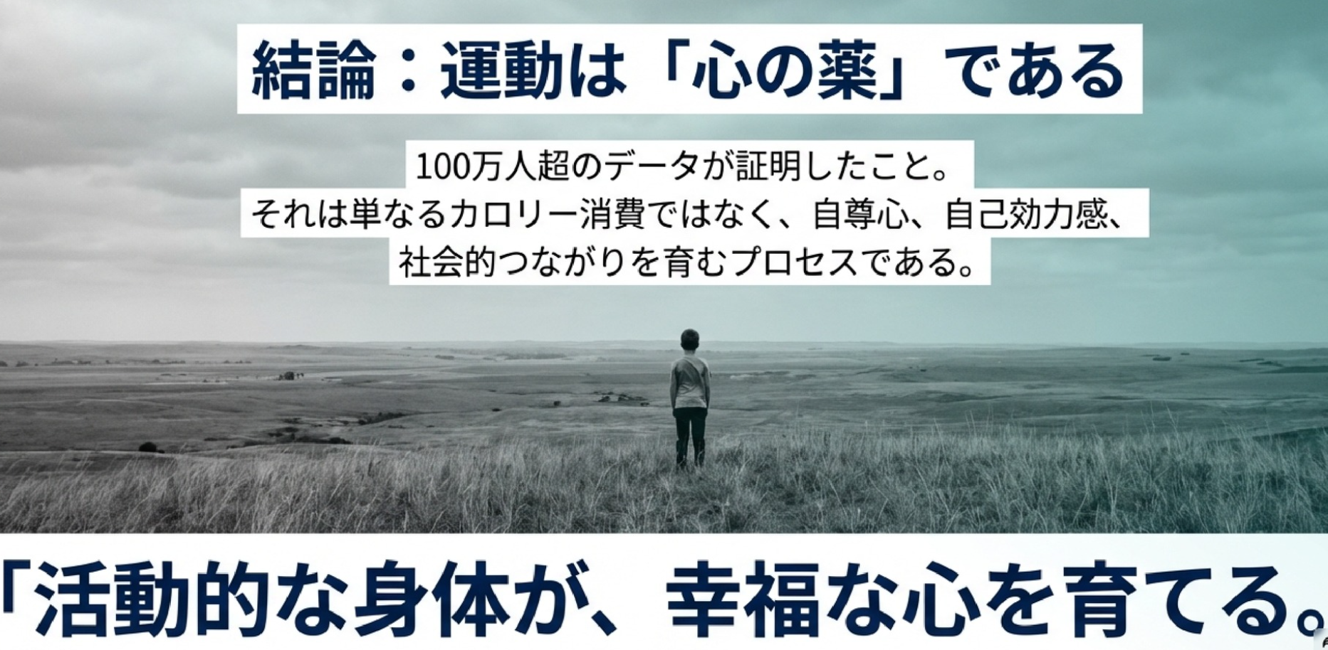 運動は「心の薬」 Well Being 2026.03.26 世界中の100万人の調査によると、スポーツしている10代は、1.43倍幸せとのこと! 何となくそうだろうなとは前から思っていたけれど、運動はメンタルに効くということ。 スポーツをすると、自尊心、自己効力感、自己コントロール力、レジリエンス、睡眠の質、友人関係などが高まって、幸せにつながる。 また、運動すると幸せだし、幸せだと運動する、という循環も生まれる。 年齢とともに運動することが少なくなるけれど、自分の出来る範囲で体は動かしたほうが良い。 運動すること。 これも、ウェルビーイング!