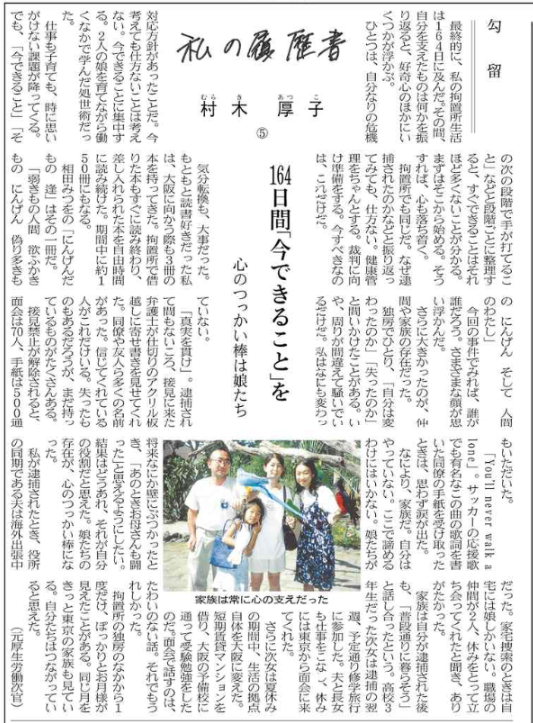 元・厚生労働省事務次官の村木厚子さんの「私の履歴書」より。